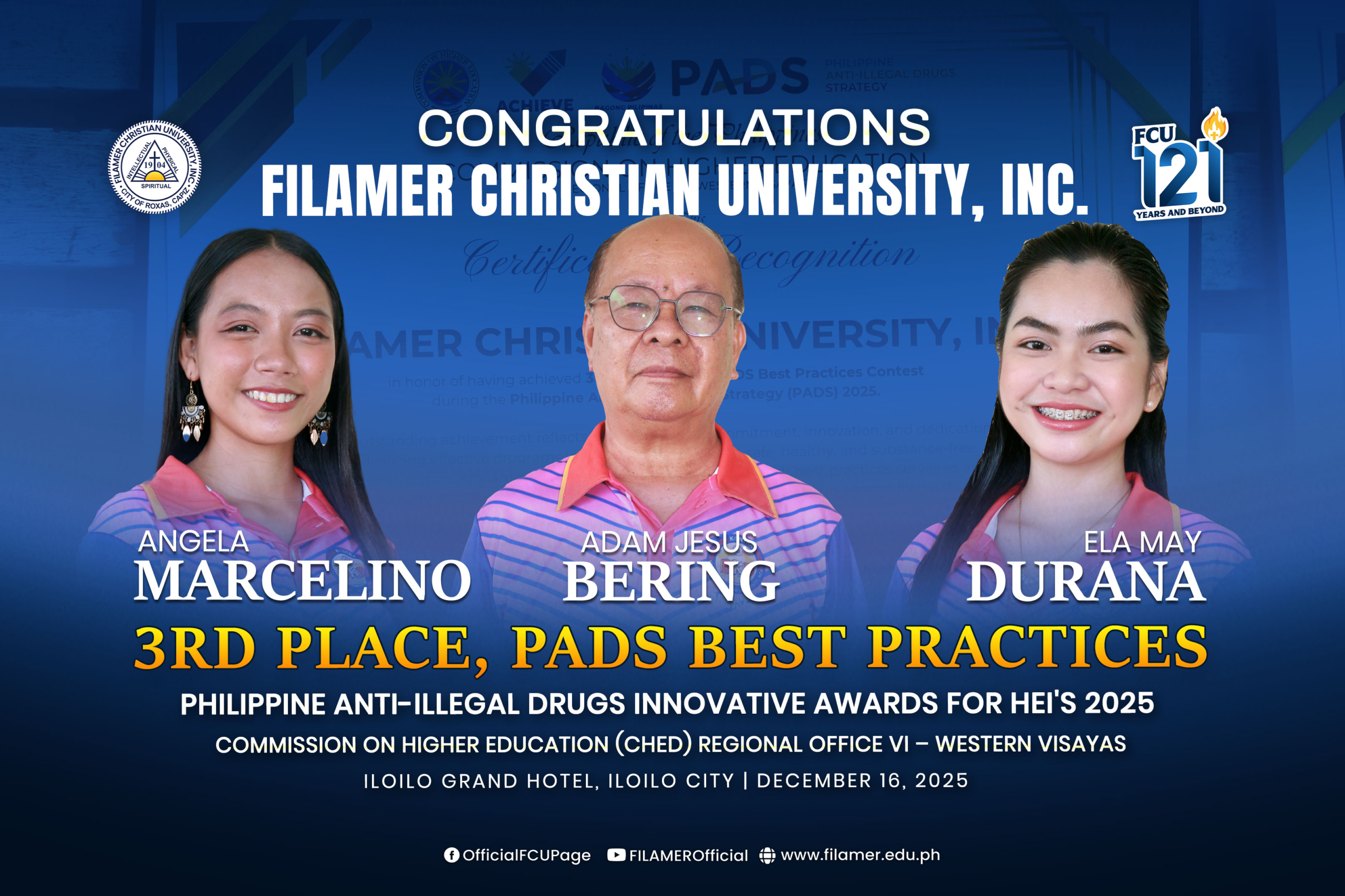 Filamer Christian University (FCU) encourages social responsibility and hones students to be their best selves. FCU creates a safe space for academically-inclined individuals and talented students, hence, the variety in courses offered and the existence of various organizations that align in their respective interests. Through the curriculum applied and events held in the university, Filamerians are equipped with holistic competency.