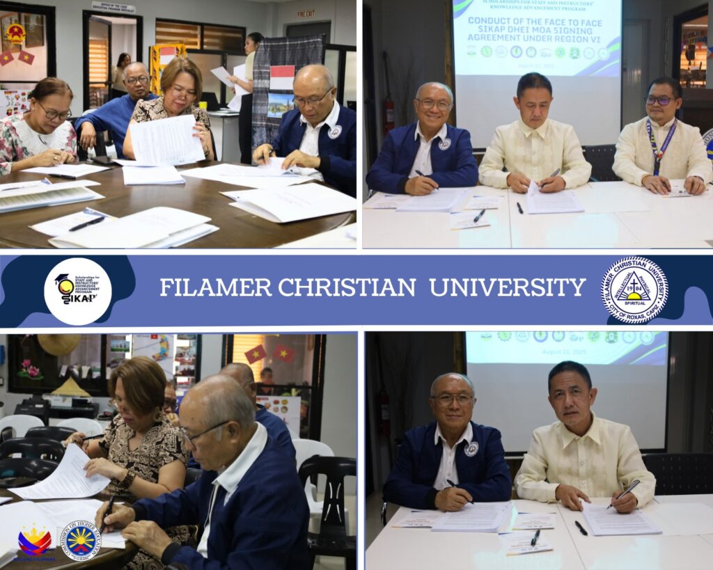 Filamer Christian University (FCU) has taken another significant step toward elevating faculty development and academic excellence through its participation in the Scholarship for Instructors’ Knowledge Advancement Program (SIKAP) of the Commission on Higher Education (CHED) during a ceremonial signing of Memorandum of Agreement at the CHED Regional Office VI in Iloilo City, August 11.