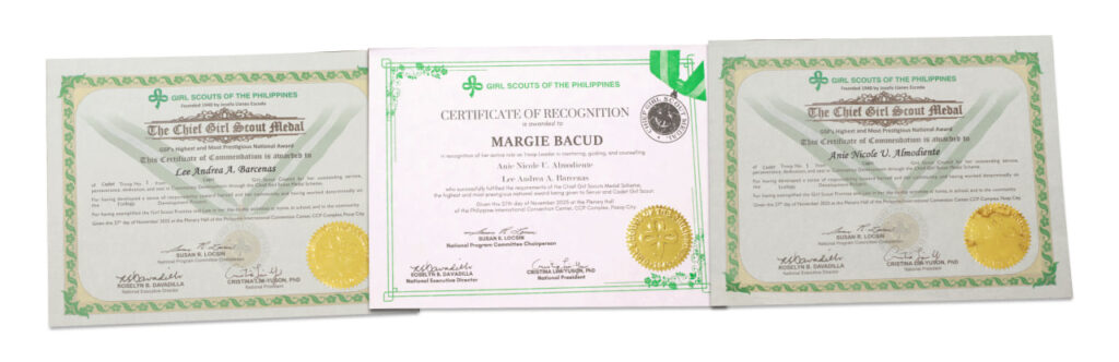 Two Senior High School students from Filamer Christian University were conferred the Chief Girl Scout Medal, the highest and most prestigious national award of the Girl Scouts of the Philippines (GSP), during the recognition ceremony held on November 27, 2025 at the Philippine International Convention Center (PICC).