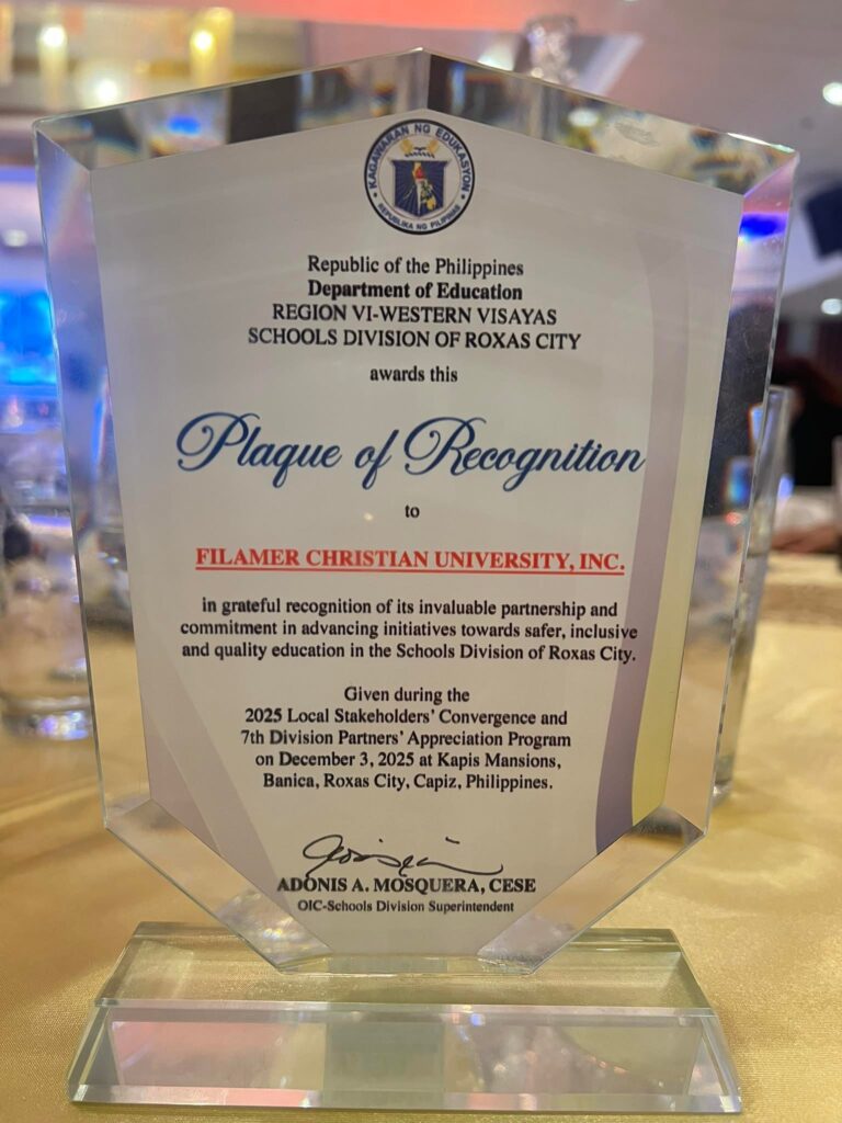 Filamer Christian University, Inc. (FCU) was recently recognized by the Department of Education (DepEd) for its meaningful contributions to Barra Elementary School through sustained community extension and outreach initiatives.